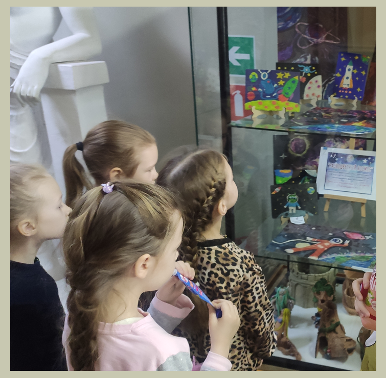 День космонавтики Детская художественная школа города Орла отметила художественными выставками творческих работ обучающихся. В экспозицию вошли композиции посвящённые героям космоса и представление о далёких планетах и мирах. Обучающиеся младшего возраста использовали для своих работ цветной пластилин. Их работы разместились на выставке "Разноцветный космос".