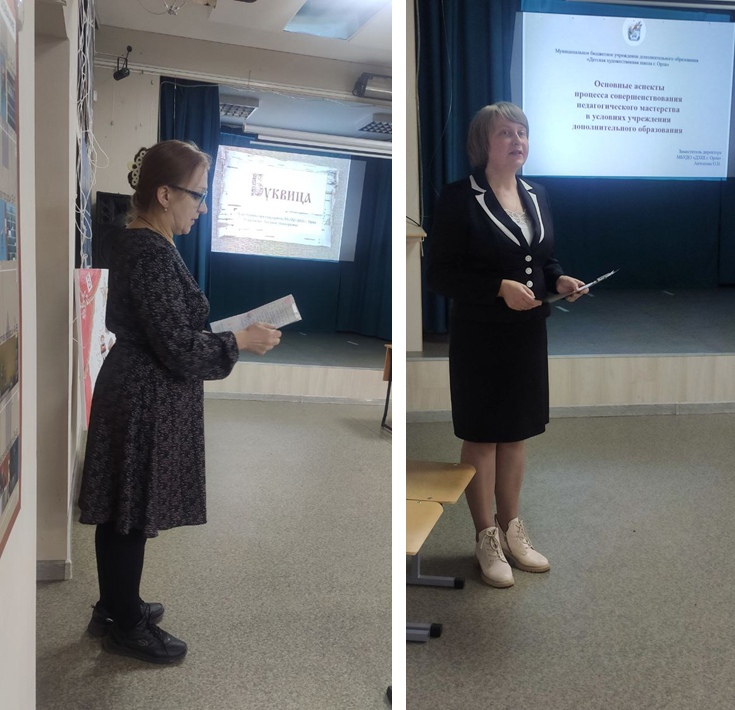 1 апреля 2025 г. БУП ОО «Орловское художественное училище им. Г.Г. Мясоедова» прошла Областная научно - методическая конференция по обмену опытом для преподавателей изобразительного искусства детских художественных школ и детских школ искусств Орловской области. И пока проходила олимпиада по композиции в ходе конференции происходил обмен опытом работы в рамках конференции. В числе выступающих в этот день представили свои теоретические материалы: