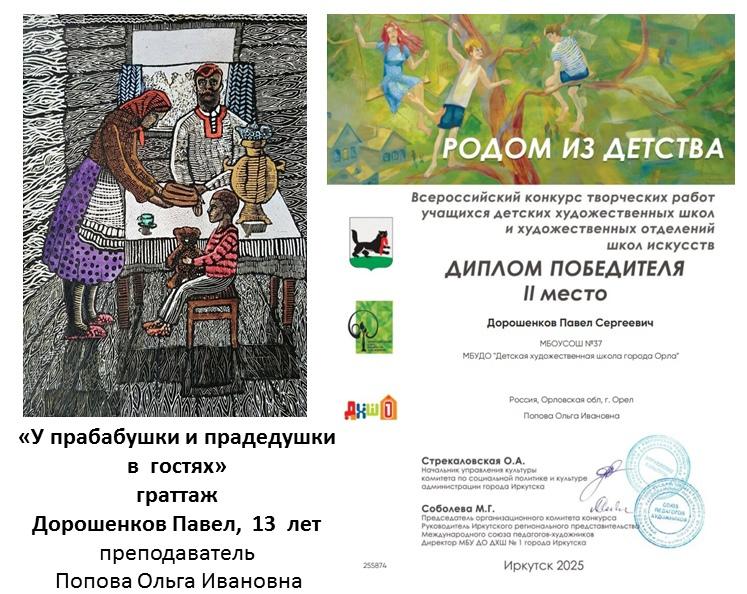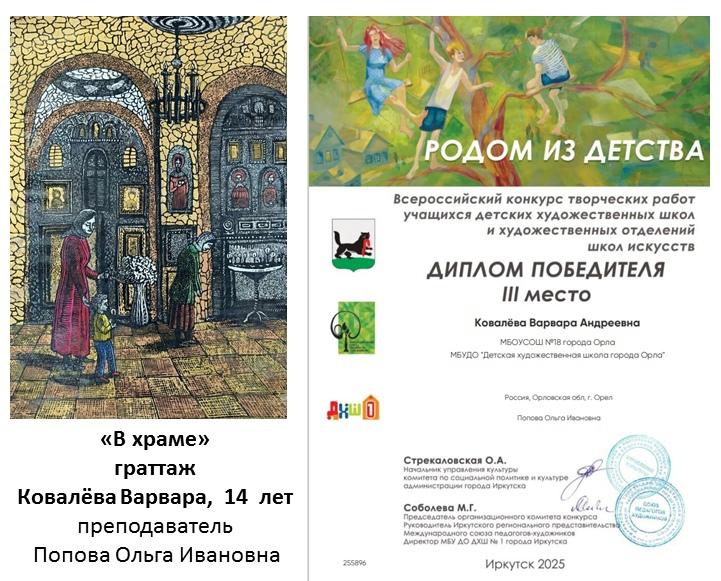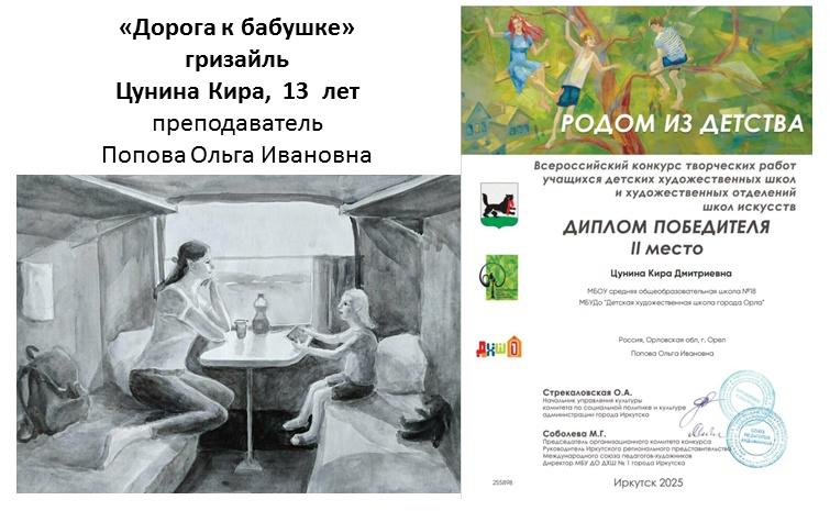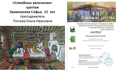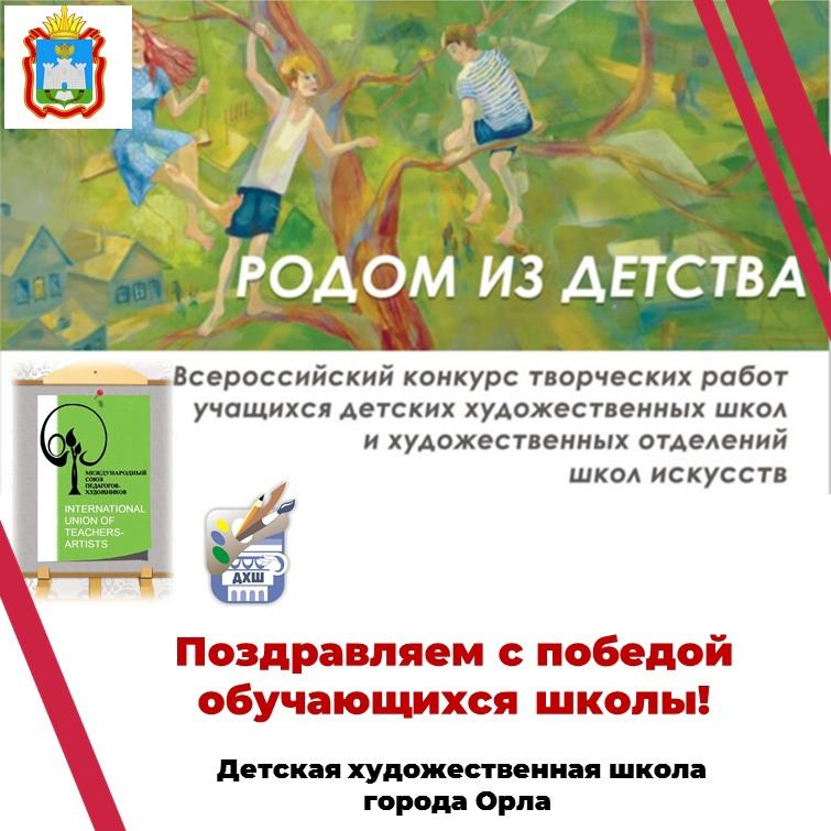 Обучающиеся Детской художественной школы города Орла стали победителями Всероссийского конкурса творческих работ учащихся детских художественных школ и художественных отделений школ искусств. Конкурс проводился в городе Иркутске куда отправились работы наших обучающихся.