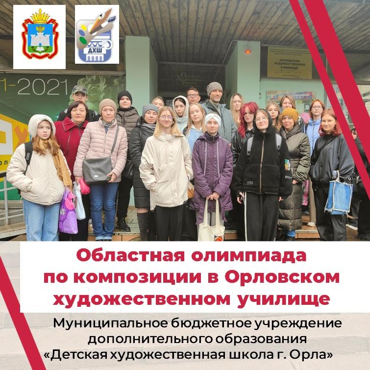 1 апреля 2025 г. 16 обучающихся Детской художественной школы г. Орла приняли участие в областной олимпиаде по композиции для обучающихся 4-5 классов Детских художественных школ и школ искусств города Орла и Орловской области. Творческие соревнования проходили по станковой, декоративной, прикладной и скульптурной композиции. Получив задания, участники олимпиады, на протяжении 4 часов создавали свои творческие композиции.