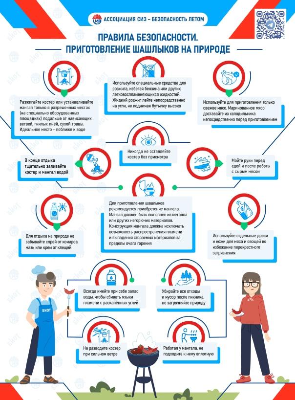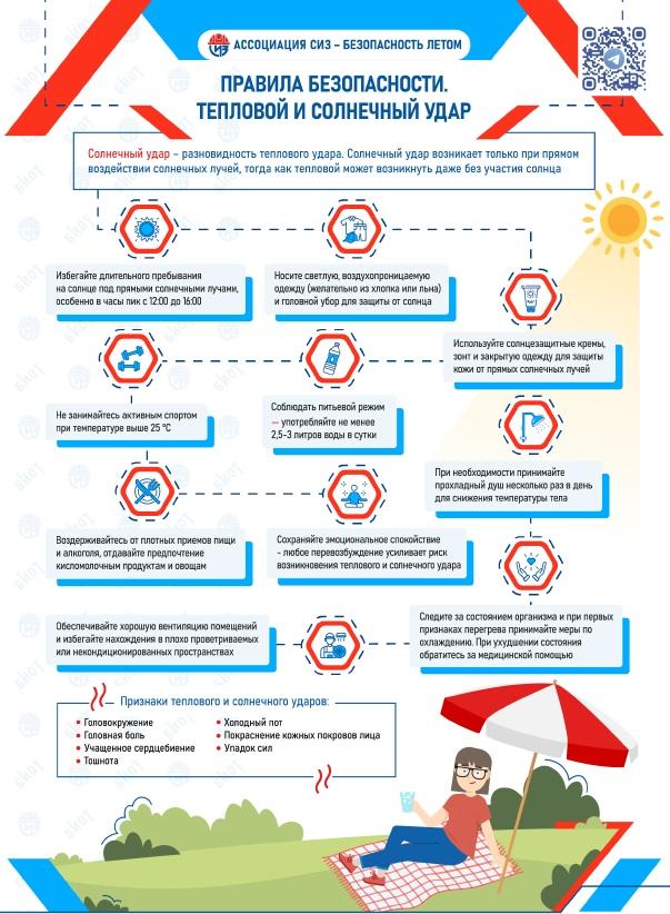 Экспертами Ассоциации «СИЗ» подготовлена серия инфографик, содержащая общие правила безопасности, с которыми каждый из нас может столкнуться в летний период.