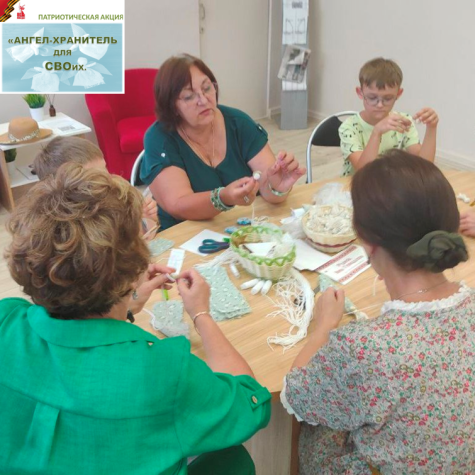 В день открытия выставки прошла патриотическая акция "Ангел для СВОих", на которой посетители выставки любого возраста делали фигурки ангелов и написали свои пожелания бойцам специальной военной операции.  Как сделать такую фигурку с добыми пожеланиями показала член товарищества Орловских художников преподаватель Детской художественной школы города Орла Нина Руднева.