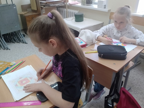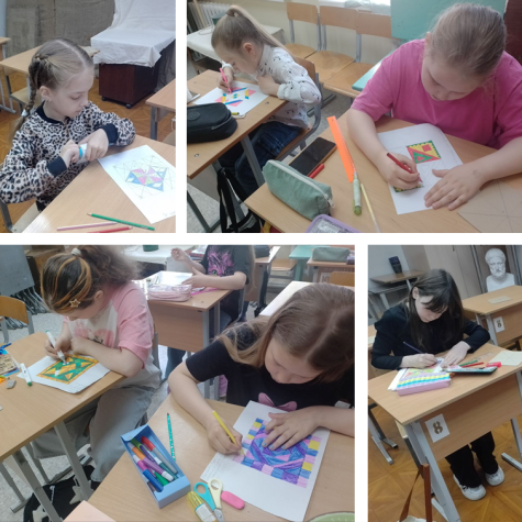 Сегодня поступающие выполняют задание по композиции, а так как программы для обучения  в нашей школе были предложены две, то и задания по композиции тоже разные. Поступающие на предпрофессиональную программу в области изобразительного искусства "Живопись"  выполняю образ сказочного героя, а поступающие на предпрофессиональную программу в области декоративно - прикладного искусства "Декоративно - прикладное творчество"  получили задание - сделать  симметричный геометрический орнамент в квадрате.