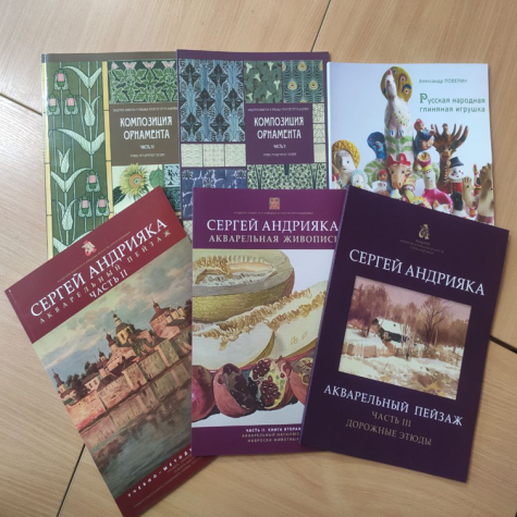 Учебно - методическая литература, приобретённая в Московской государственной специализированной школе акварели Сергея Андрияки, даст возможность проводить обучение, используя знания и опыт, накопленные у московских мастеров акварельной живописи.