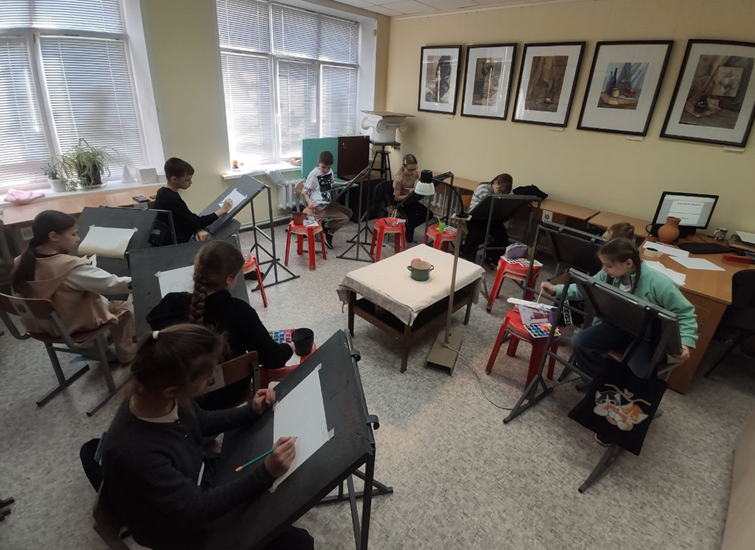 21 мая 2025 года в Детской художественной школе  города Орла продолжились вступительные экзамены для желающих поступить на обучение по предпрофессиональным программам в области искусств с 1 сентября 2025 года. Сегодня проходит экзамен по предмету "Живопись".  Поступающие показывают как они видят цвет предметов и могут передать его на листе бумаги акварельными красками.
