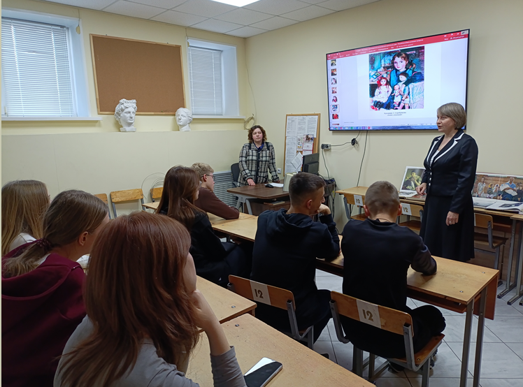 6 марта библиотекарь Зимина Ольга Викторовна провела мероприятие «Прекрасные женские образы в картинах художников», посвященное Международному женскому дню 8 марта. Она рассказала обучающимся 5-х классов о женщинах, запечатленных на картинах великих отечественных художников, в которых они показали женщину не только красивой внешне, но и с красивой душой. Художники с помощью своих картин рассказали не только о женщине как матери, жене, хранительнице домашнего очага, но и о трудолюбии женщин, их красоте, умении сострадать и помогать. Их картины говорят о том, что женщина активно реализует себя в различных профессиях. Ольга Викторовна продемонстрировала презентацию картин отечественных художников, на которых были запечатлены женщины.