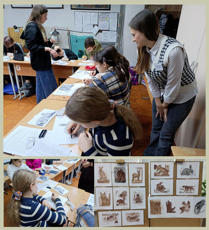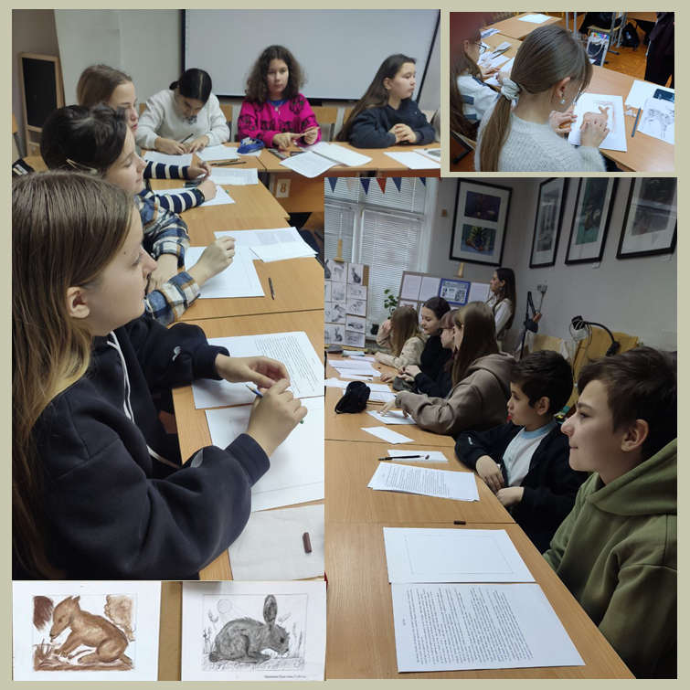 Участникам мероприятия рассказали о творчестве писателя, его отношению к родной природе и создании книги "Зверята". В ходе мероприятия были выполнены иллюстрации к рассказам Е. Чарушина, которые передали сюжеты его рассказов.